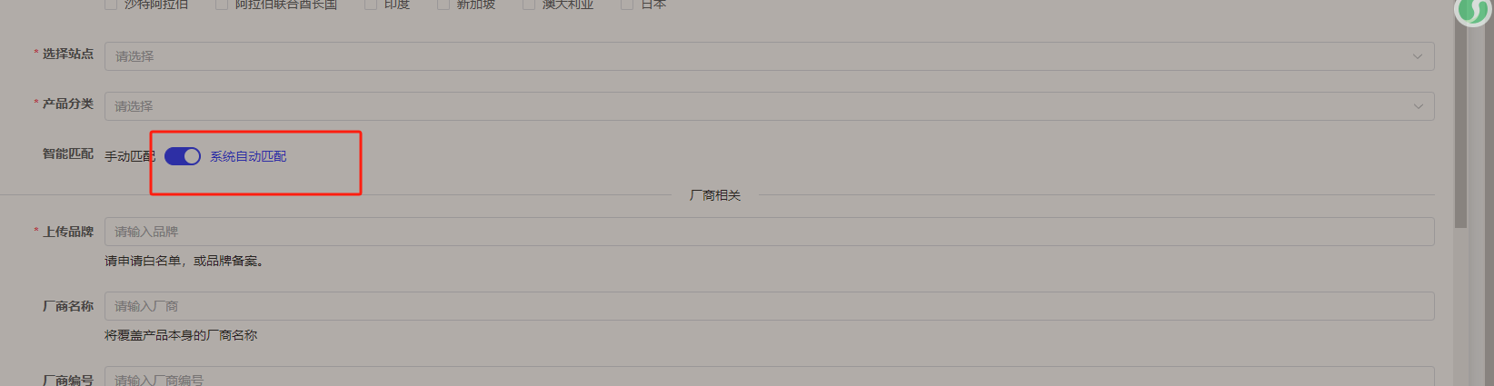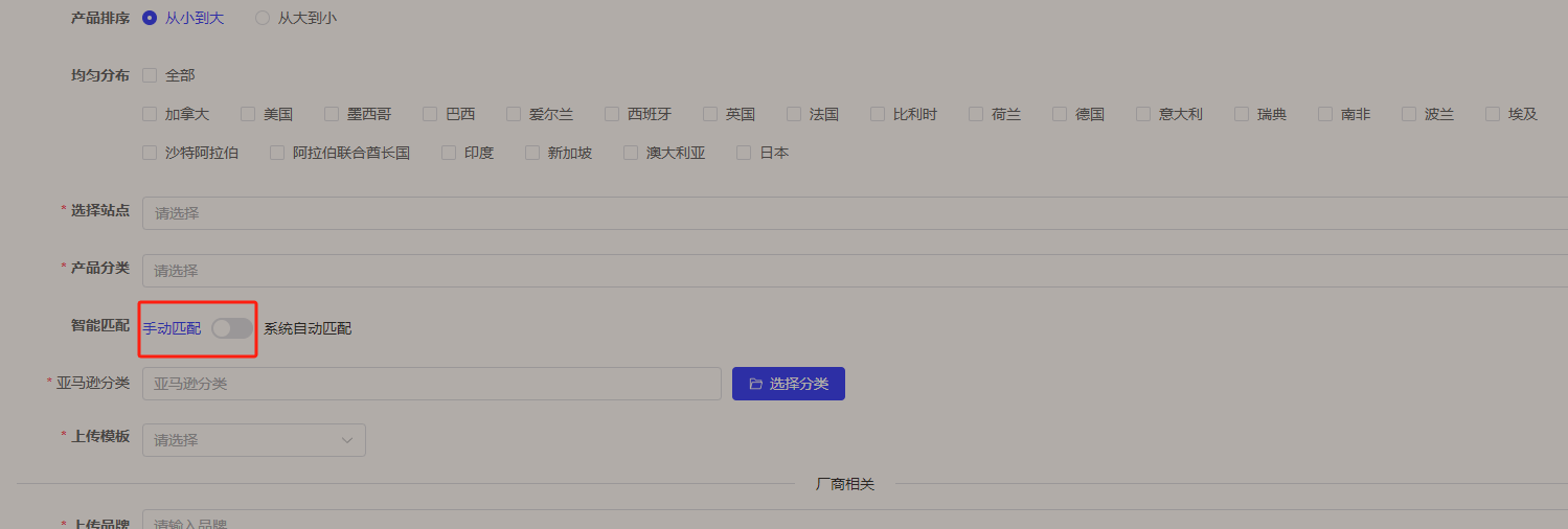 使用智能匹配后,无需手动选择亚马逊分类和上传模板,系统会根据算法自动匹配出商品使用的亚马逊和上传模板,请注意上传模板会根据系统现有的模板中来进行匹配,后续上传模板会逐步开放新的模板,