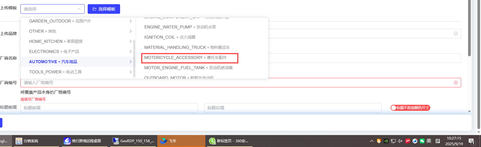 上传模板没有摩托车配件了,摩托车配件应该怎么选择上传模板?
