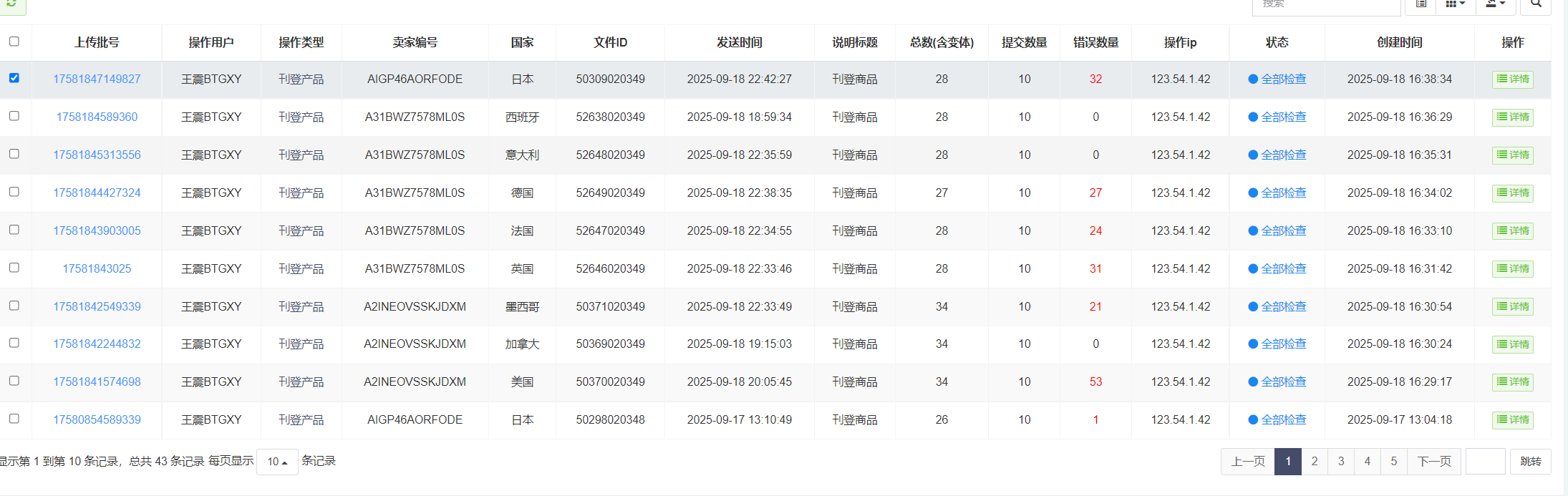 上传产品出现失败,3个国家正常,6个国家大量失败