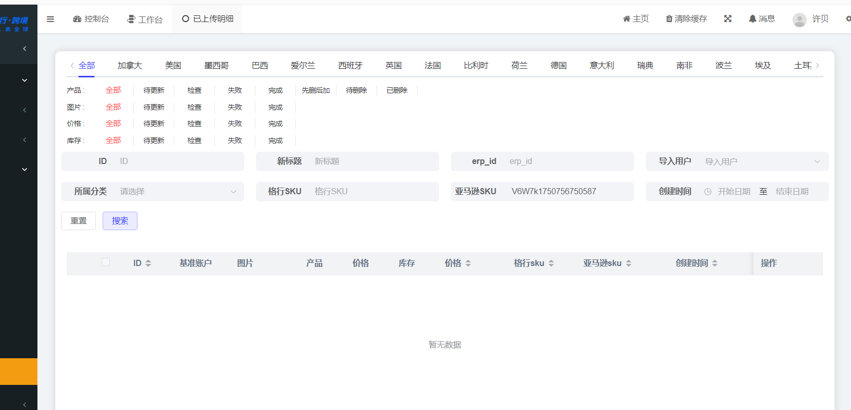 上传产品出错,后台和店铺和实际不符合